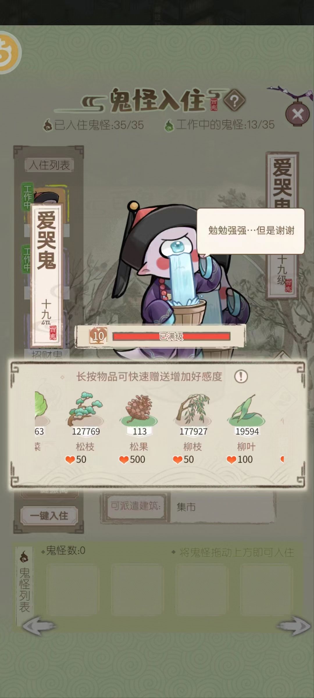 2.鬼怪好感度部分低数值数量又多的物品增加好感费时费力