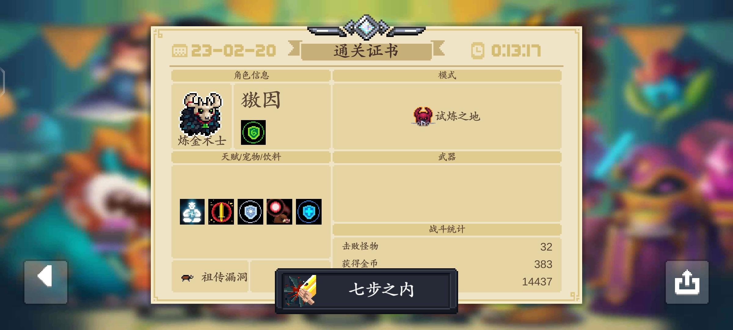 有了,兄弟们,终于打完七步之内了,这次运气好,开局就是气功波天赋