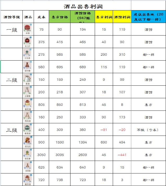 酒水不管是在酒馆出售还是在集市出售,两个酒水出售利润相差在20以内在哪里出售都一样,差别不大。