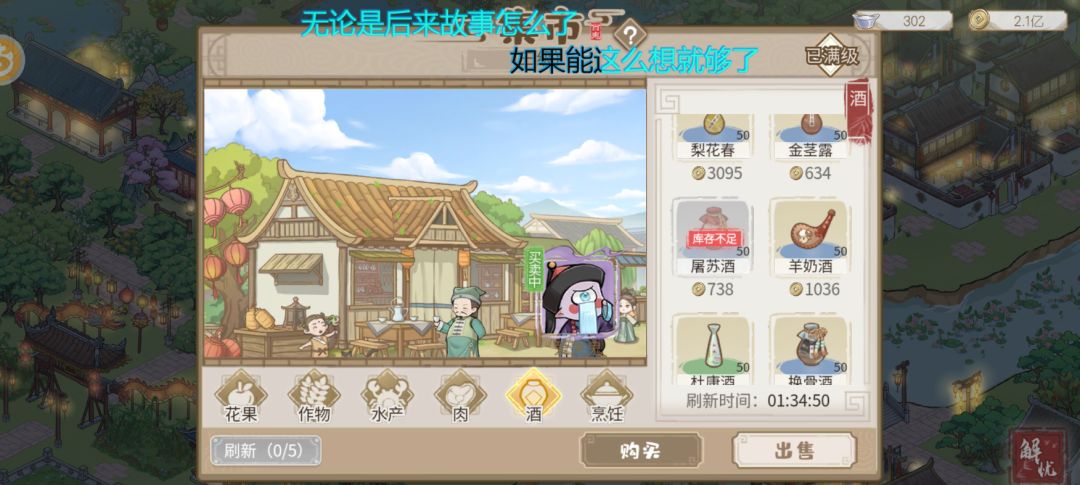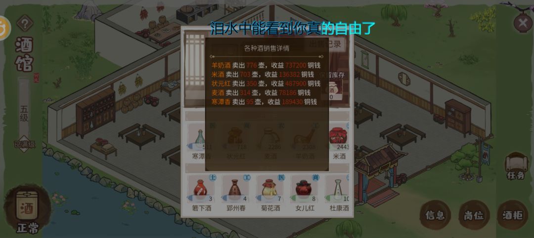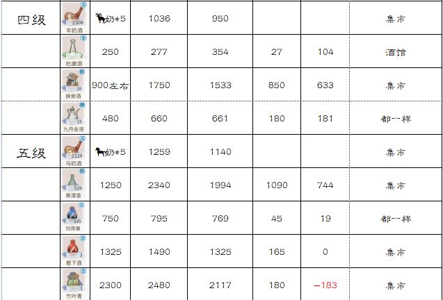 不管你的账房和老板的属性再怎么高,有的酒水出售的价格永远没集市的高。就拿羊奶酒为例,集市的出售价格为 1036,而酒馆的出售价格却只有950,在酒馆出售整整亏了86块钱,对比集市的价格更愿意在集市出售,集市老板爱哭鬼解锁技能还能出售更高。