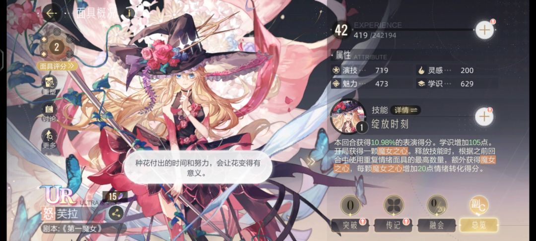 ⭕芙拉的技能效果为增加一定学识。开局获得一颗【魔女之心】。释放技能时根据之前回合中使用重复情绪面具的最高数量。额外获得【魔女之心】,每颗【魔女之心】增加一定情绪转化得分。满级技能基础百分比数值为55%,学识增加7199点,每颗【魔女之心】提供8173点情绪转化分。【魔女之心】不能被抢夺或复制。