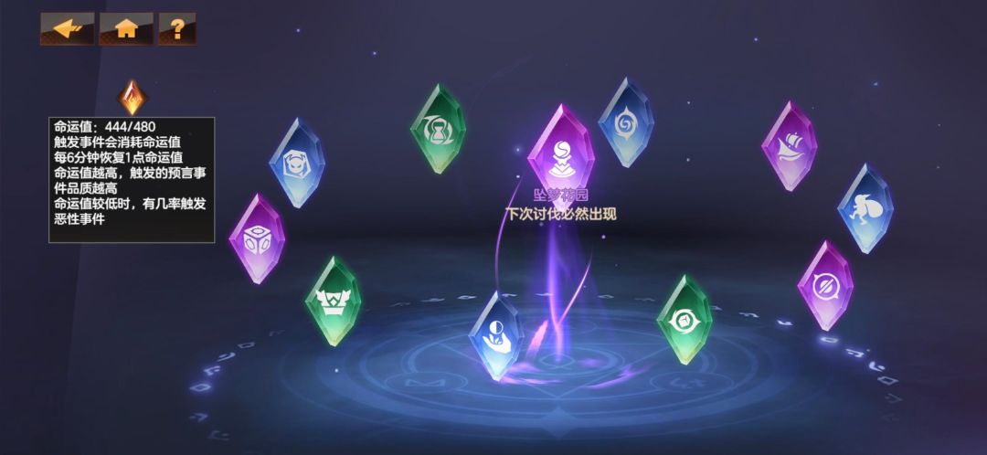 需要注意的是,预言事件触发后会消耗命运值,每6分钟可以恢复1点命运值。命运值越高,触发的预言事件品质越高,而越稀有的事件消耗的命运值也越多。当冒险者命运值过低时,可能会遭遇恶性事件。