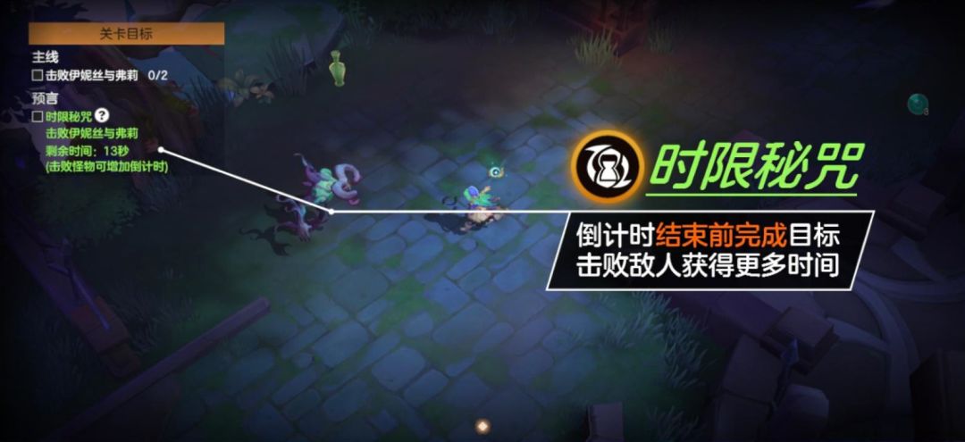 十、时限秘咒:冒险者需击败更多的怪物以争取宝贵的时间,成功在时限内击败首领,可获得随机契约石奖励。