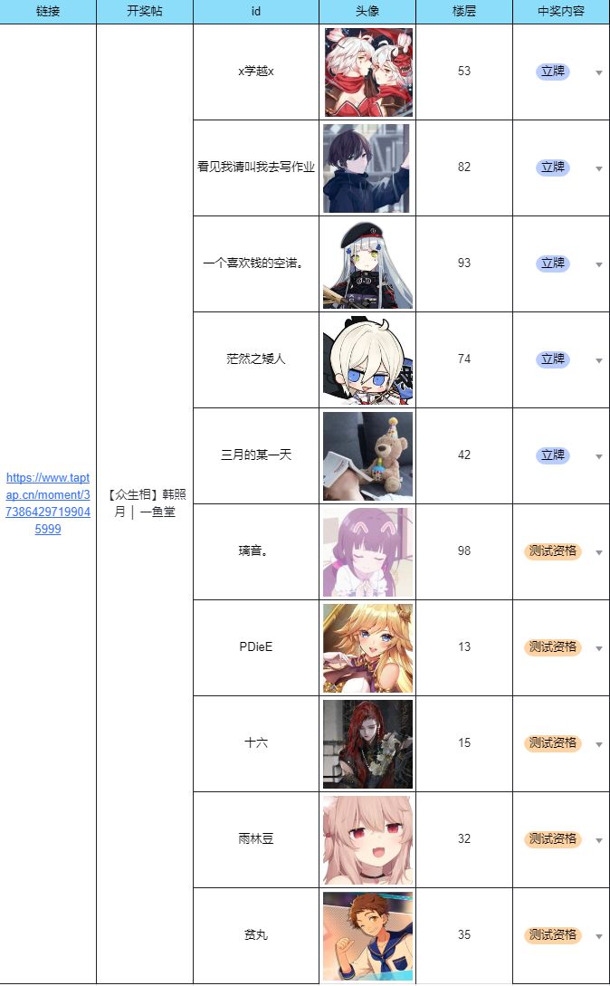 获得【随机立牌】*1的队长,发送您的个人主页截图、TapTap ID、收件人、地址和手机号,我们将于30个工作日内寄出~