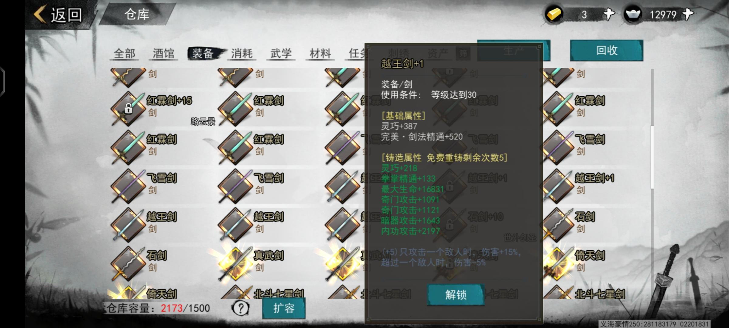 4.刺绣或者武学凑出2级及以上的致命追击词条!