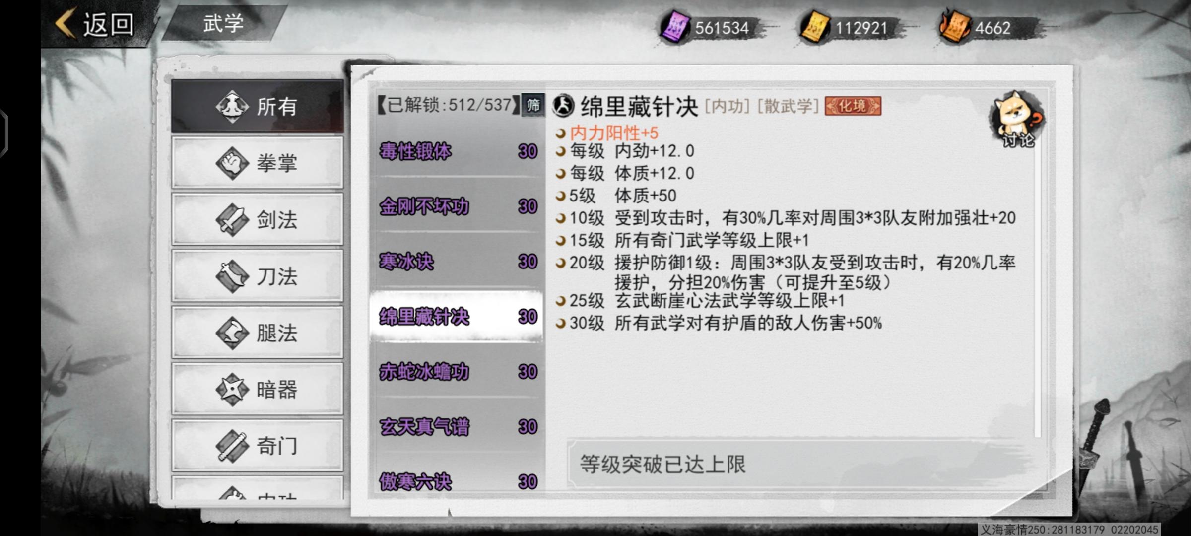你如果觉得预期收益要大于一级援护防御带来的负面效果,那么绵里藏针决可以上了
