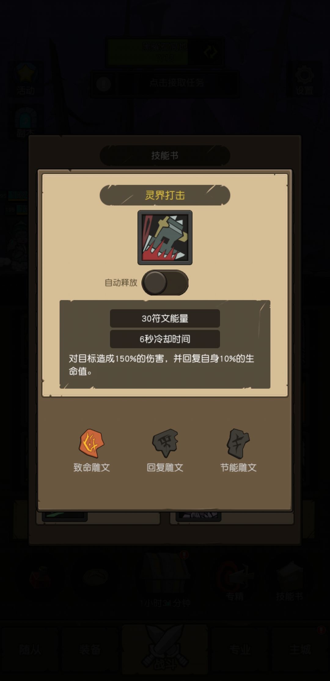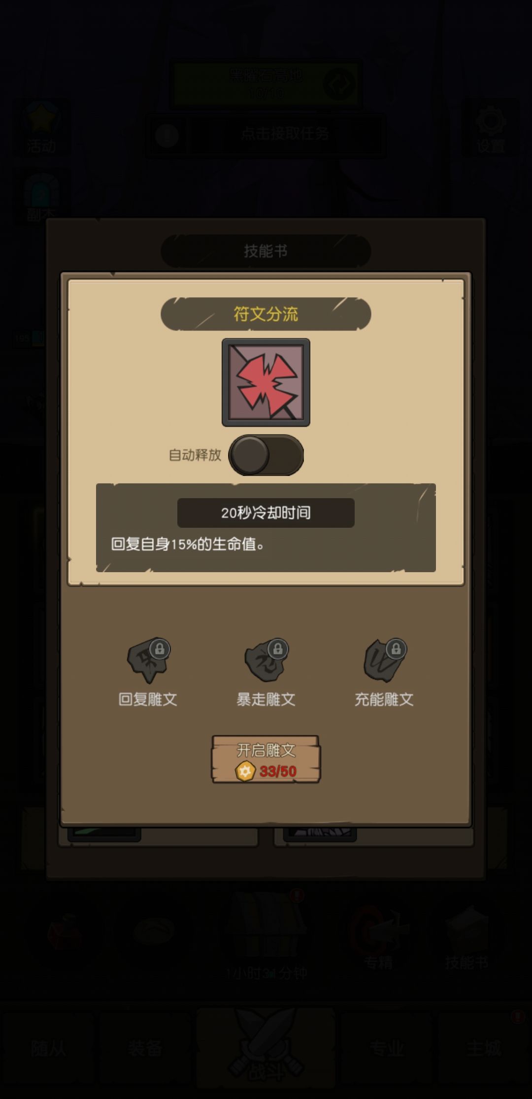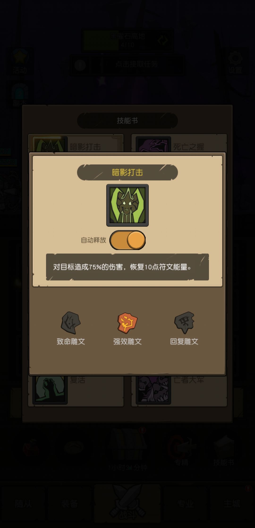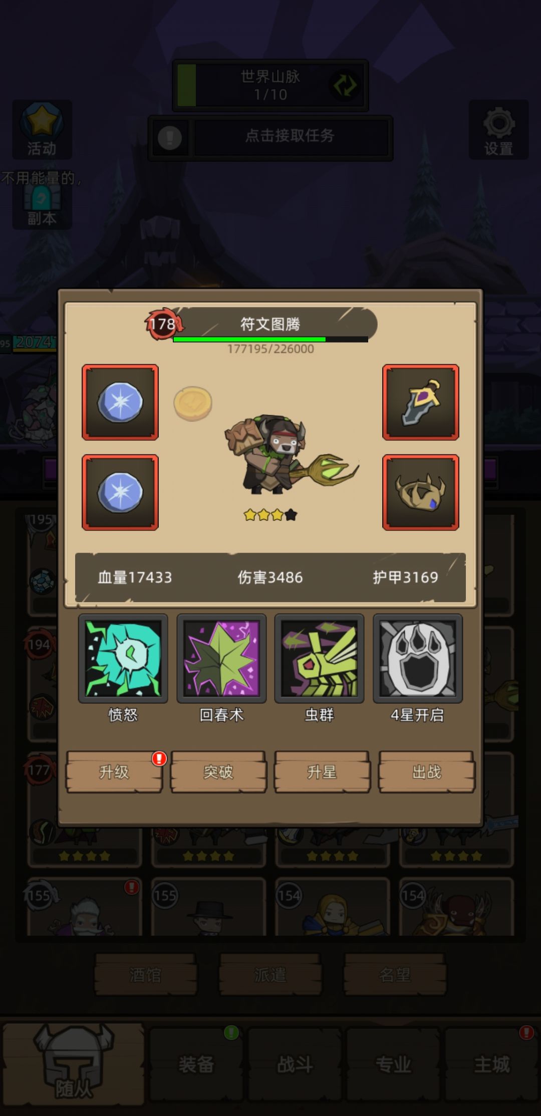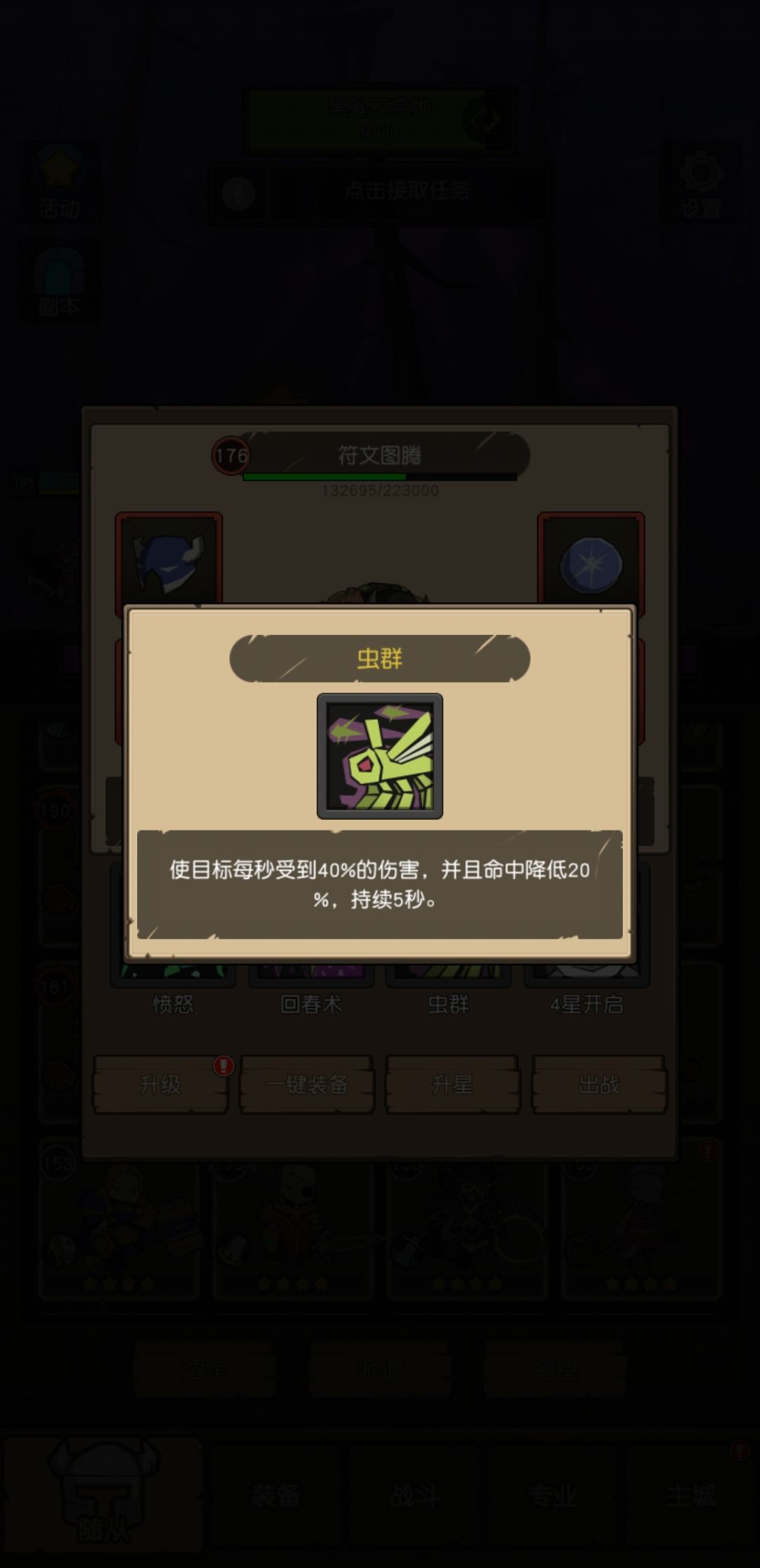 可选择带两个治疗型随从,提高自己的容错率。随从方面,首选符文图腾,该随从入手简单,技能则是加血和减怪命中,实用性极强。![[嗒啦啦4_好耶]](https://img.tapimg.com/market/images/d378b7a8f38cae2d3dfb6170d918238b.gif)