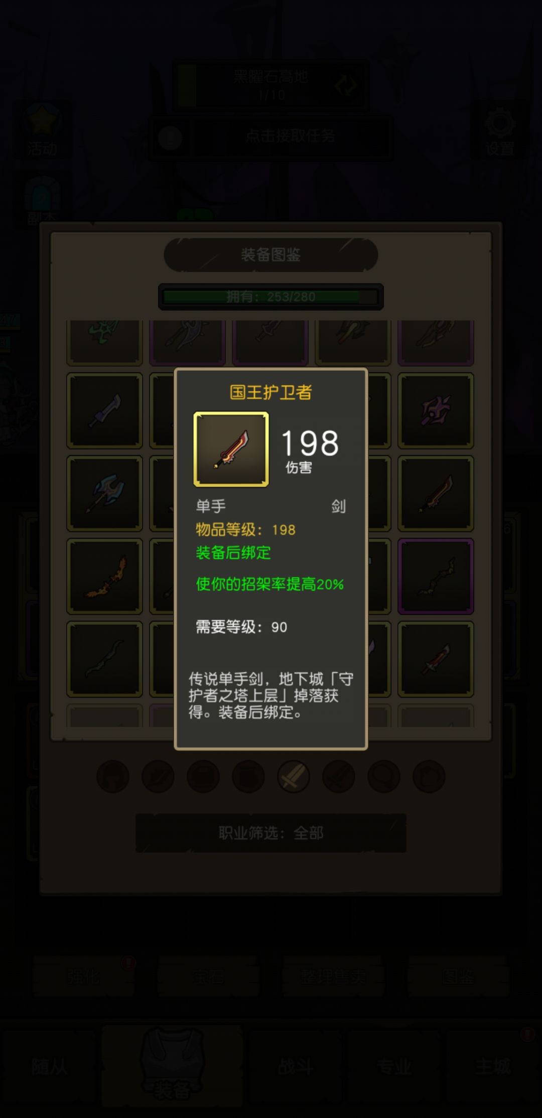 在本阶段的开门任务中,“守护者之塔上层”的4号boss掉落的国王守卫者是你开荒不二的选择,刷出来2把,几乎可以做到任何boss都很难打死你。
