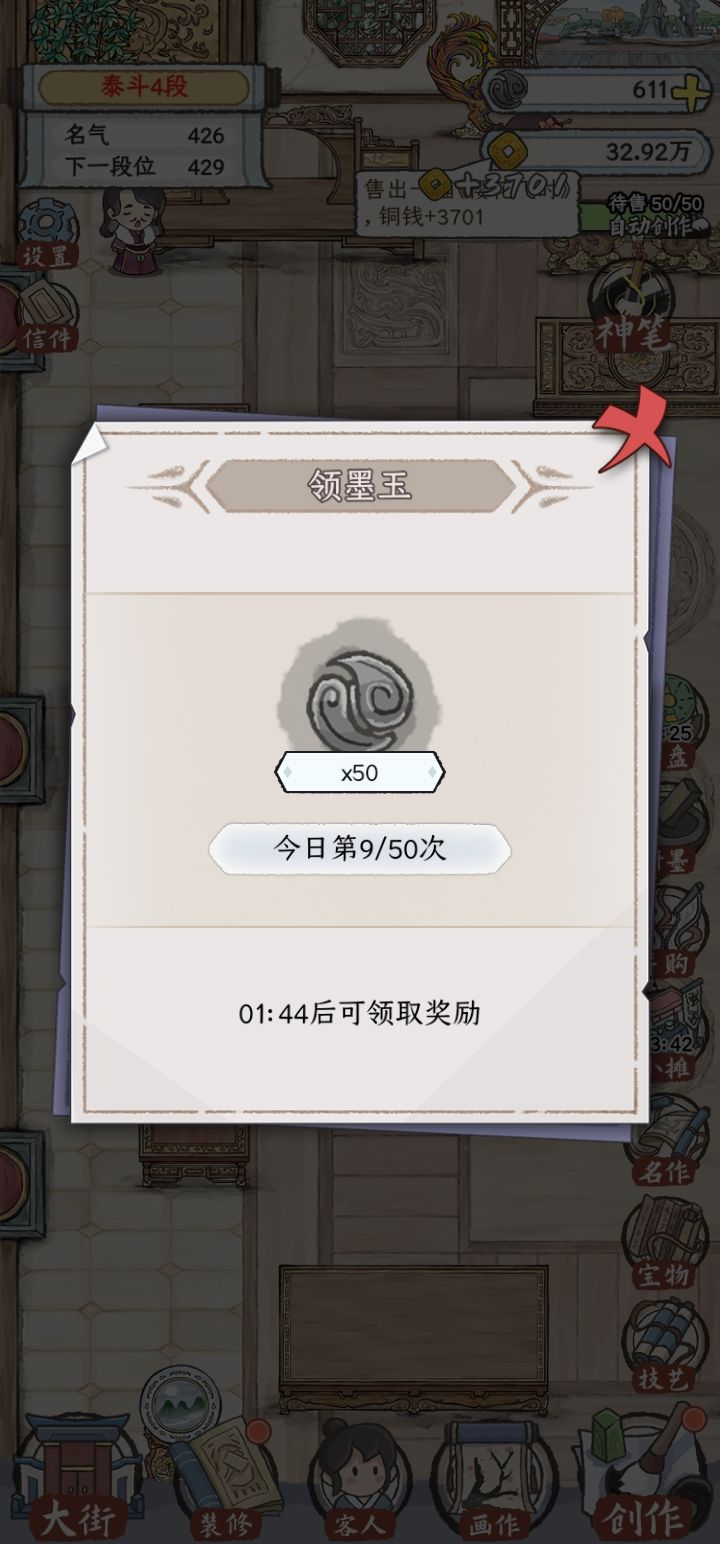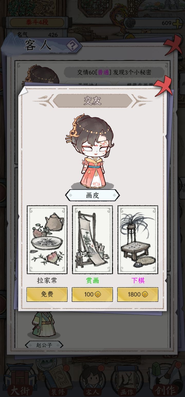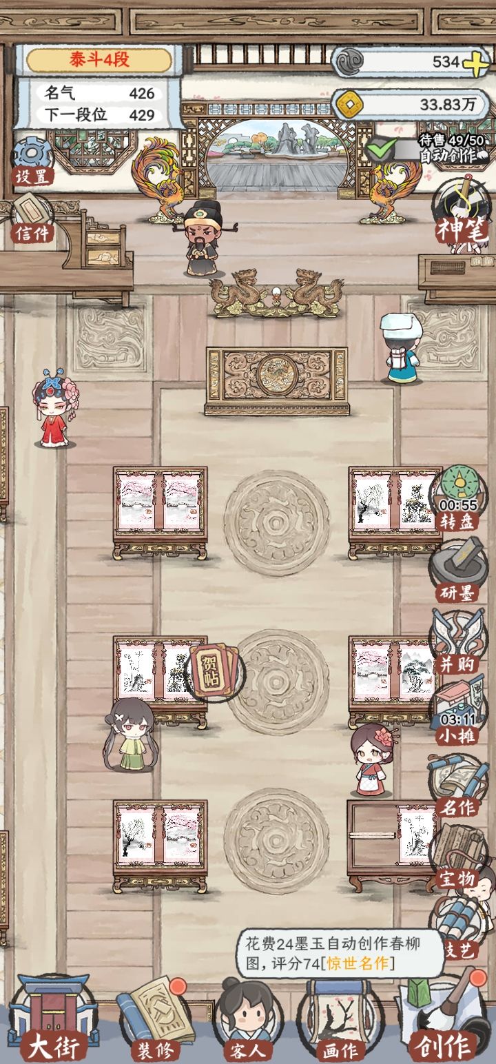 最后:其实玩这个游戏刚开始以为是那种了解传统绘画知识,比如磨墨用用什么磨,画的时候用什么手法晕染什么的,对于没画过水墨画的现代人真的蛮想了解的,有一些古代名画的介绍等等,甚至有时候还需要自己画一些“奇葩画”来补贴画铺。花了一些时间去写下来,谢谢各位观看。![[嗒啦啦2_经验+3]](https://img-tc.tapimg.com/market/images/f2dbb0dbf9438e3a20cd14342d893191.gif)