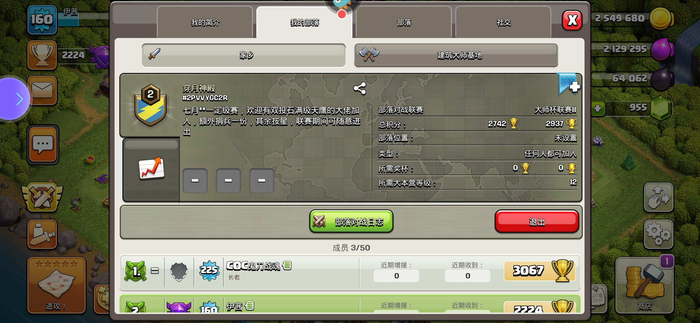 ②、加入的人一定要是12本或12本以上,并且最起码有一个稳定的流派,可以打部落联赛(举个例子吧,比如说你有雷龙流派可以用,那最起码你这个雷龙流派里面的雷龙、气球、狂暴、冰冻至少也得是差不多满级或者满级)保证能打部落战就行。