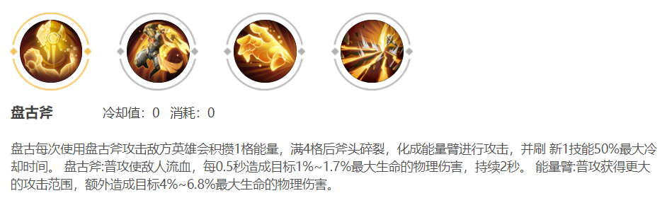 盘古的能量臂形态会造成百分比血量的伤害,如果敌方阵容偏肉,又不知道拿什么打野好,你就拿个盘古,准没错。(铭文:10狩猎 10鹰眼 10红月)