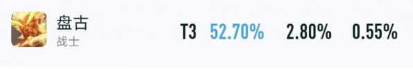 虽然出场率低,但是盘古的胜率已经来到了全打野位第二名,我个人的建议是,当敌方有多个靠普攻吃饭的英雄时(比如后羿、孙尚香、伽罗、云中君、铠、澜、马超),拿盘古可以轻松克制他们。