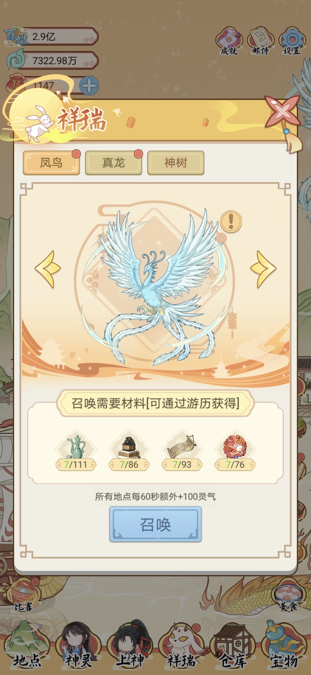 3、召唤祥瑞,增加值太少