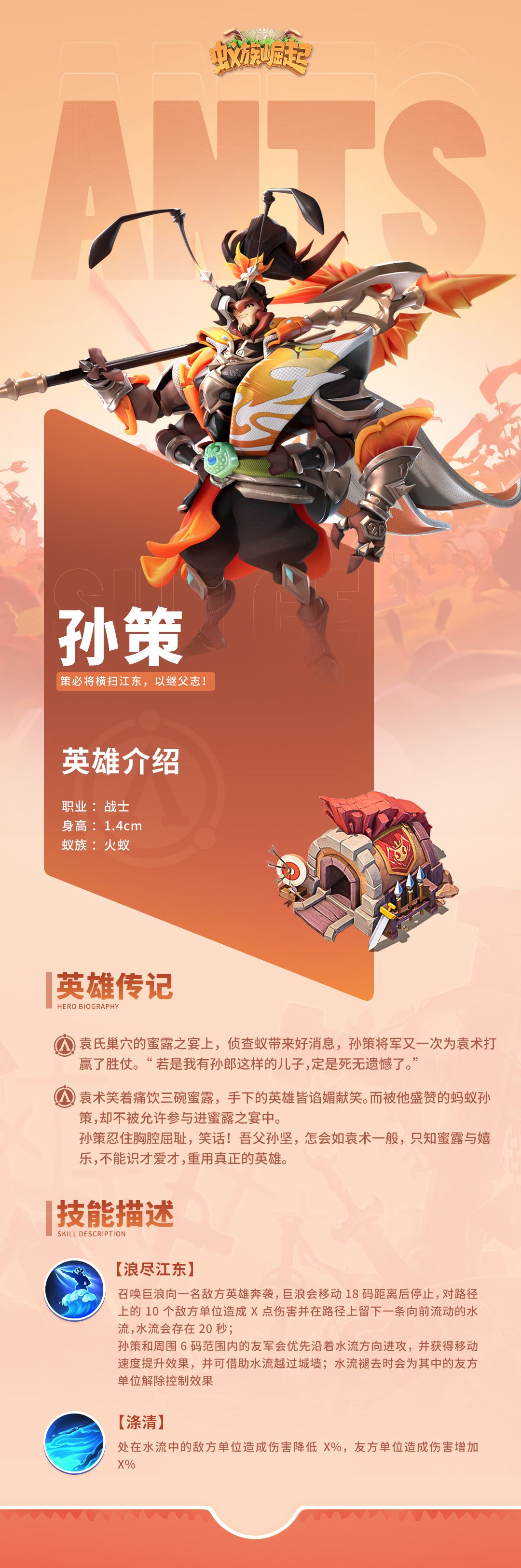 所以小娅也选在今天,正式曝光全新三国英雄“孙策”,他作为祈愿英雄,即将全面登录《蚁族崛起》,以实惠的价格与超强的实力,为平民统帅们开启一片新天地!
