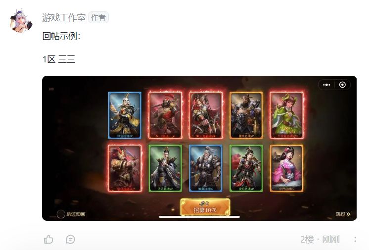 参与有奖:当月内招募红将并回帖,可获得【参与奖励】。