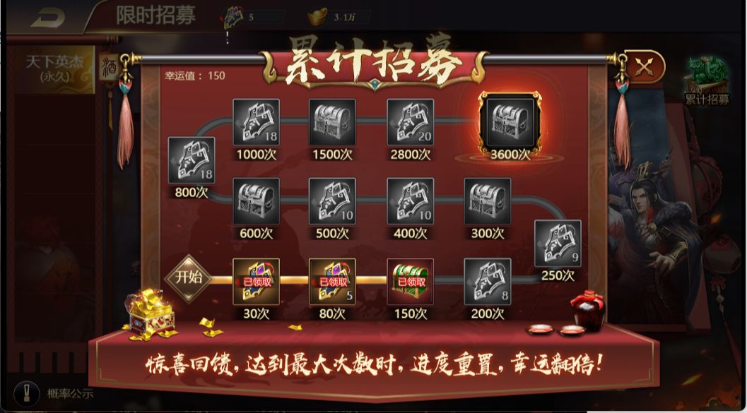 虽然看起来招募进度数值有变化,但也有不少主公发现【累计招募奖励】也不一样了!