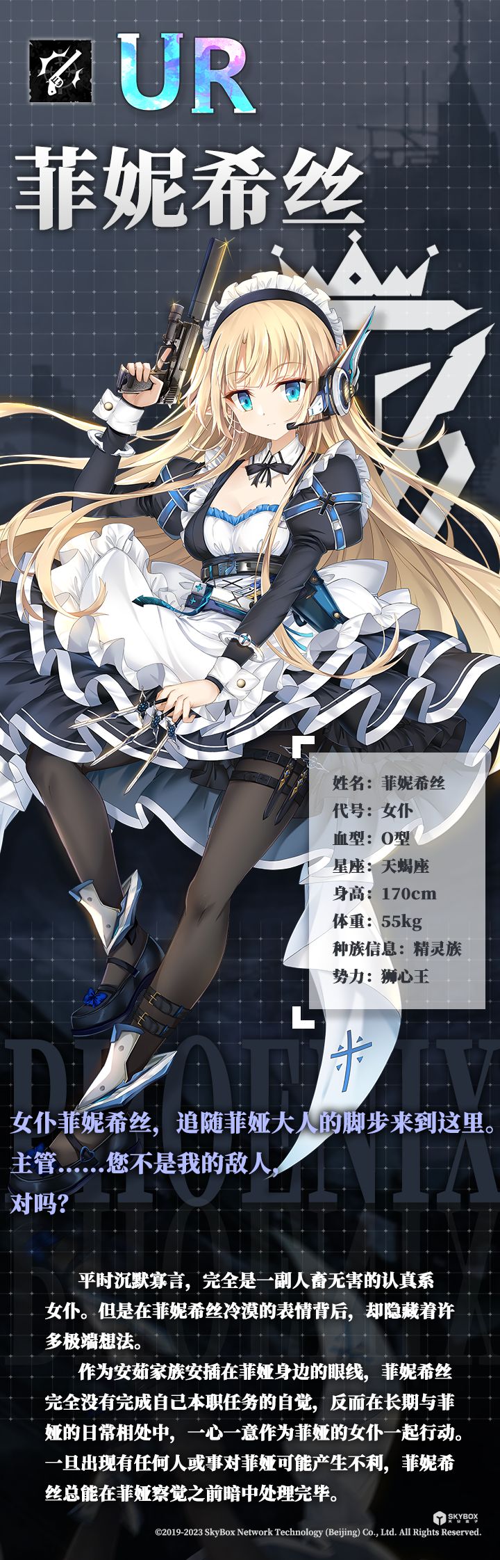 菲娅的专属女仆,精通情报工作。由于菲妮希丝拥有短暂操控时空的力量,也经常做一些比如暗中处理掉危险分子的工作。