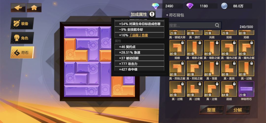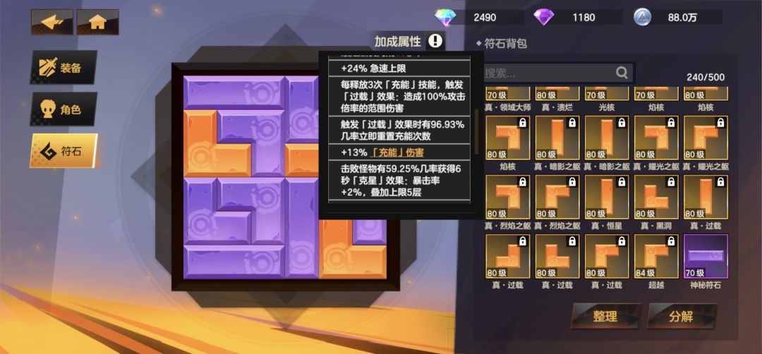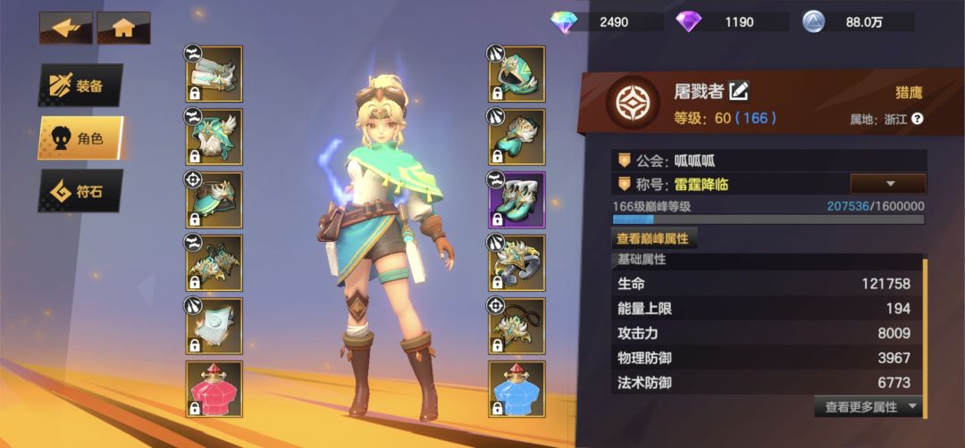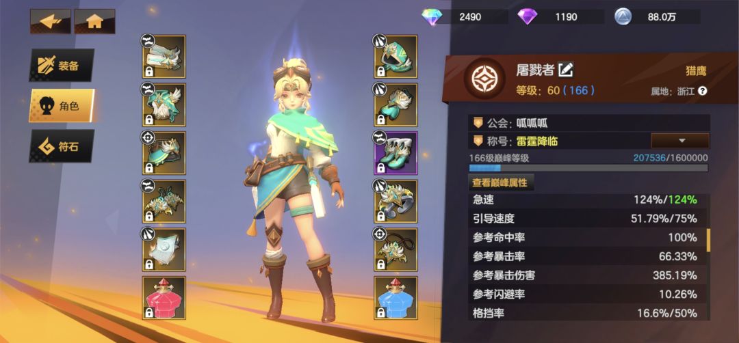 人物面板主要属性构成,优先爆伤,攻击,因为暴击可以选择契约石锐击对满血敌人百分百造成暴击,所以暴击不用刻意去堆,后期天赋装备符文包括光环所包含的暴击率足够达到七十左右。