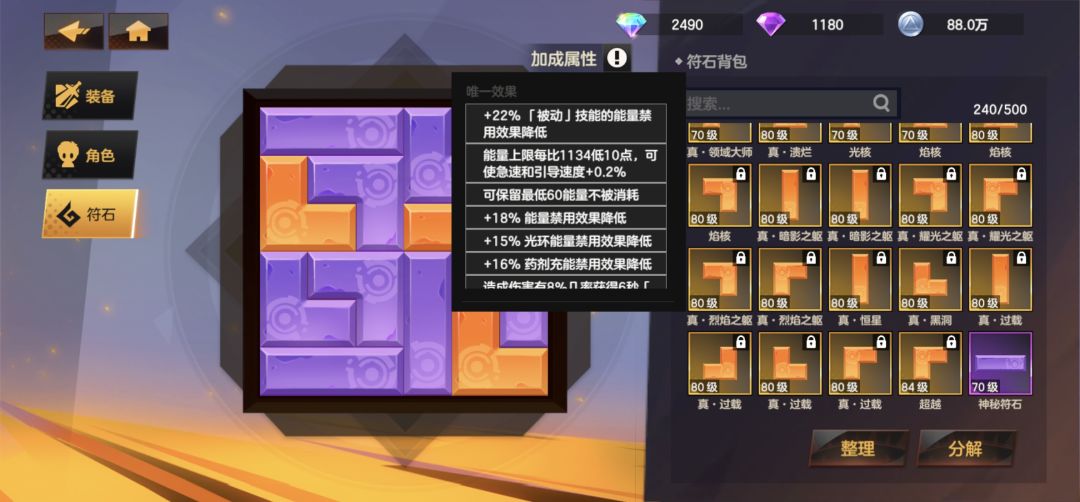符石没有千篇一律,根据自己需求,黑洞源泉减少封印能量,过载能够快速充能从而达到无冷却射击,其他的就是增伤的,速刷就堆一些移速。