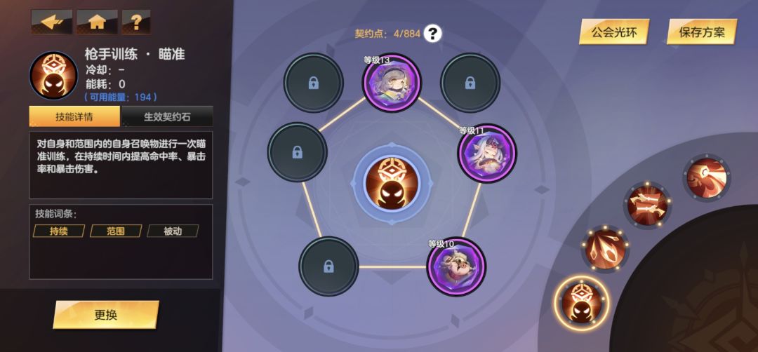 四技能没用,契约够多的话带个炮台选择个大地守护增加一点生存也是可以的。