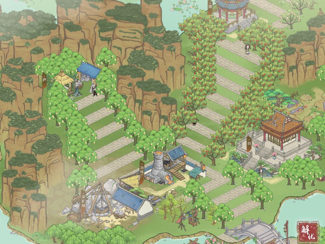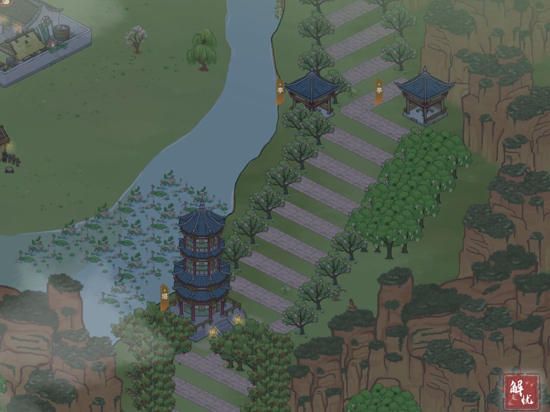幽云涧思路就是爬山了,大体思路都这样,塔和亭子可以用来装饰