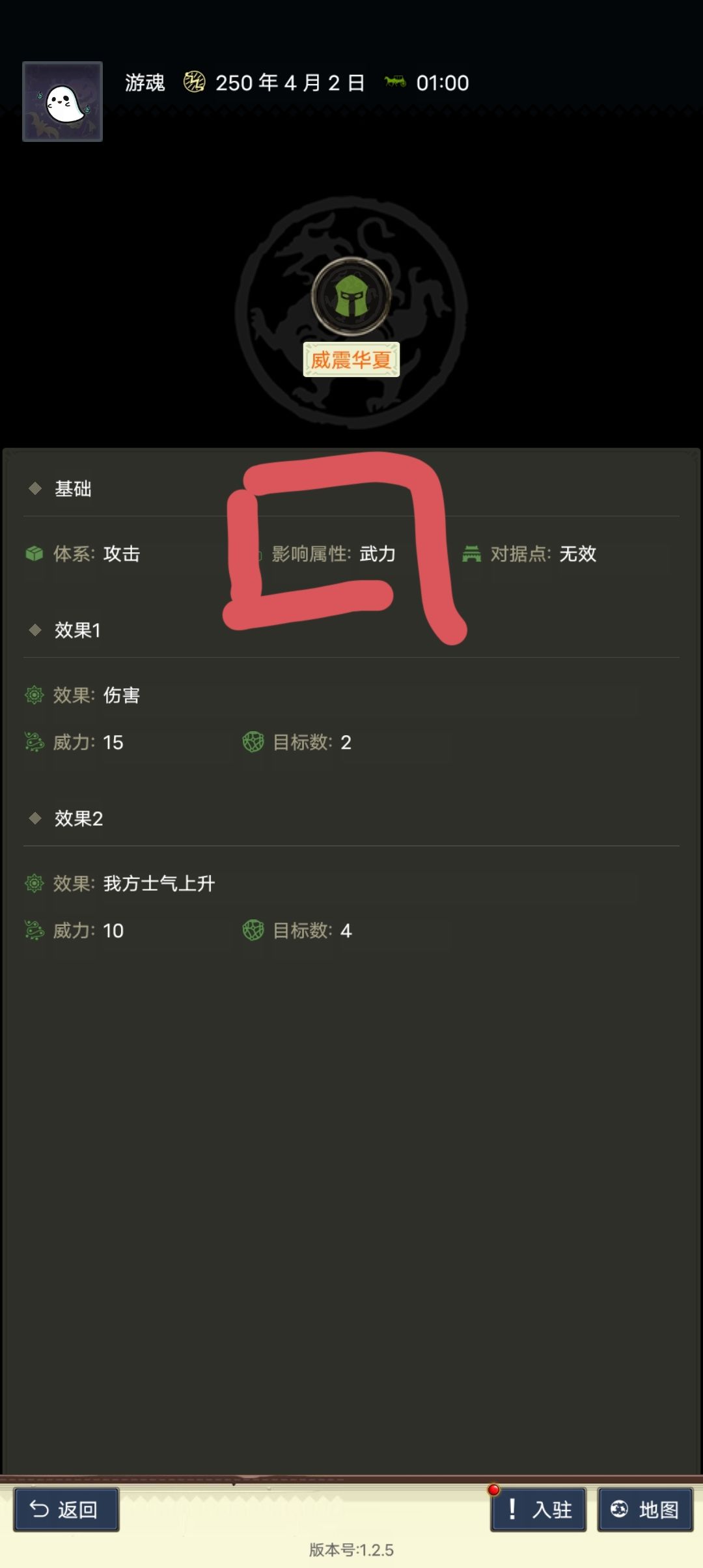 例如,这里关羽的血脉技能威震华夏影响属性是武力,所以人物的属性最好是统帅和物理较高,75+能用,越高越好。智力可以舍弃。