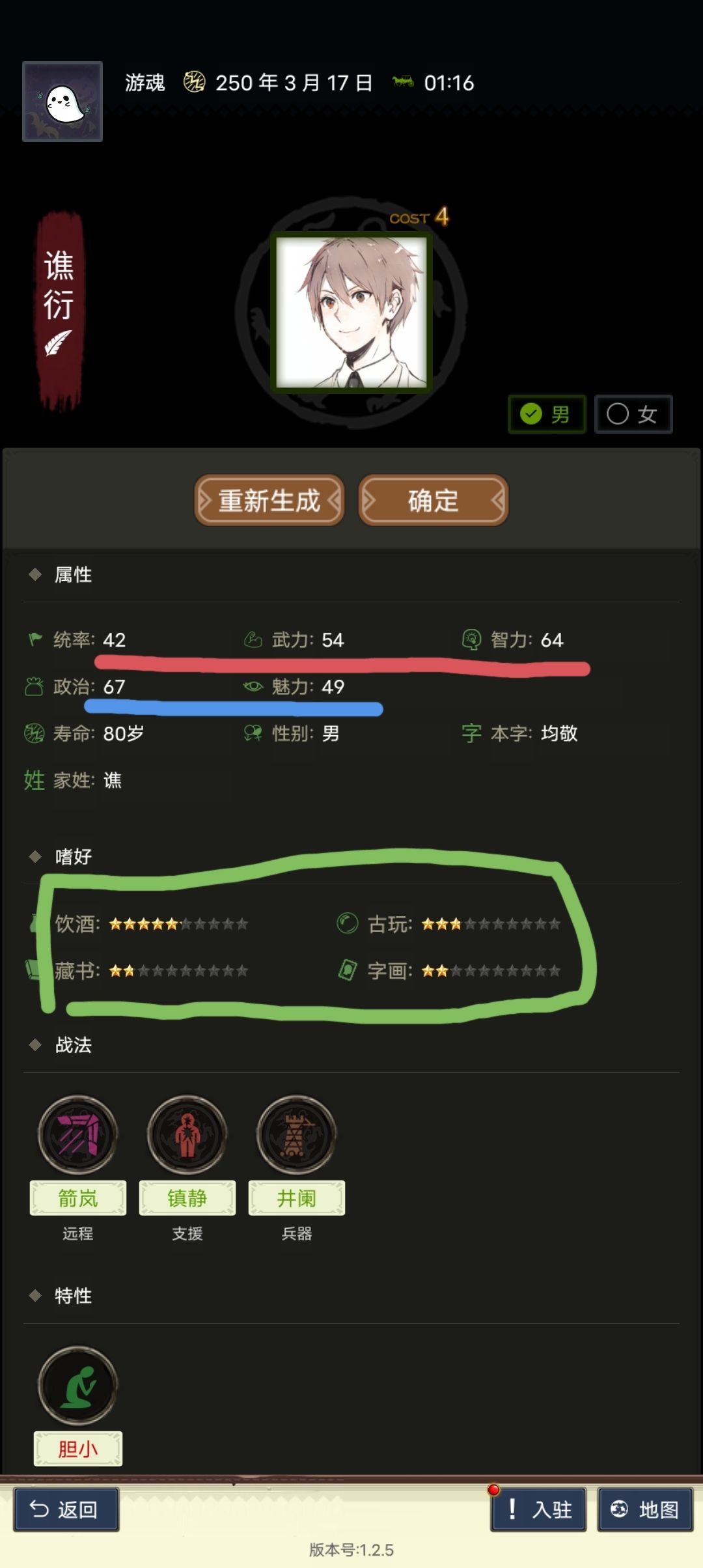 推荐随机出橙色的血脉,同时根据血脉技能确定是武力将还是智力将,在属性上能够做出取舍。