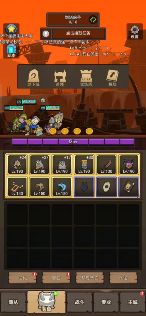[195级]首先我们做任务成功升到了195装备需要的配置还是熟悉的(魔王之剑),(国王之心)我们只会卡一一个地方,新出的195,我们穿150套装,或者140都是能打过185和190副本的除了慢没有啥缺点打195刚开始会很痛苦,当你刷到了(赤焰屏障)你就可以轻而易举的平推了,当你能打195了(魔王之剑)就可以换掉了换成,(内脏清理器),装备的话就是(钢化碧晶战铠)190套,没打195之前的配置魔王之剑+国王之心+钢化碧晶战铠,饰品推荐圣光吊坠+(希望圣物增加5生命伤害护甲),没有这个就带公正圣契约增加5%防御,推荐随从光明游侠+光明使者,这个时候就可以开启我们195攻略