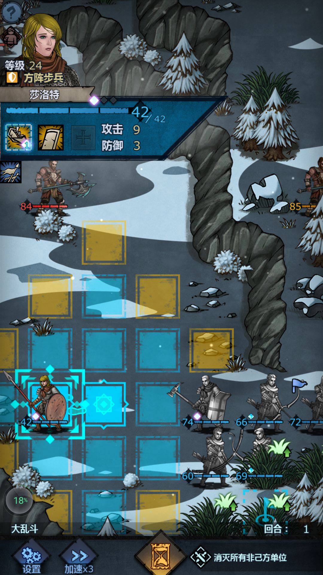 618.6 打过佩尔五盾“疯狗来袭”,骑兵开局向下站到高台中间,第2回合到左上角勾引敌人。