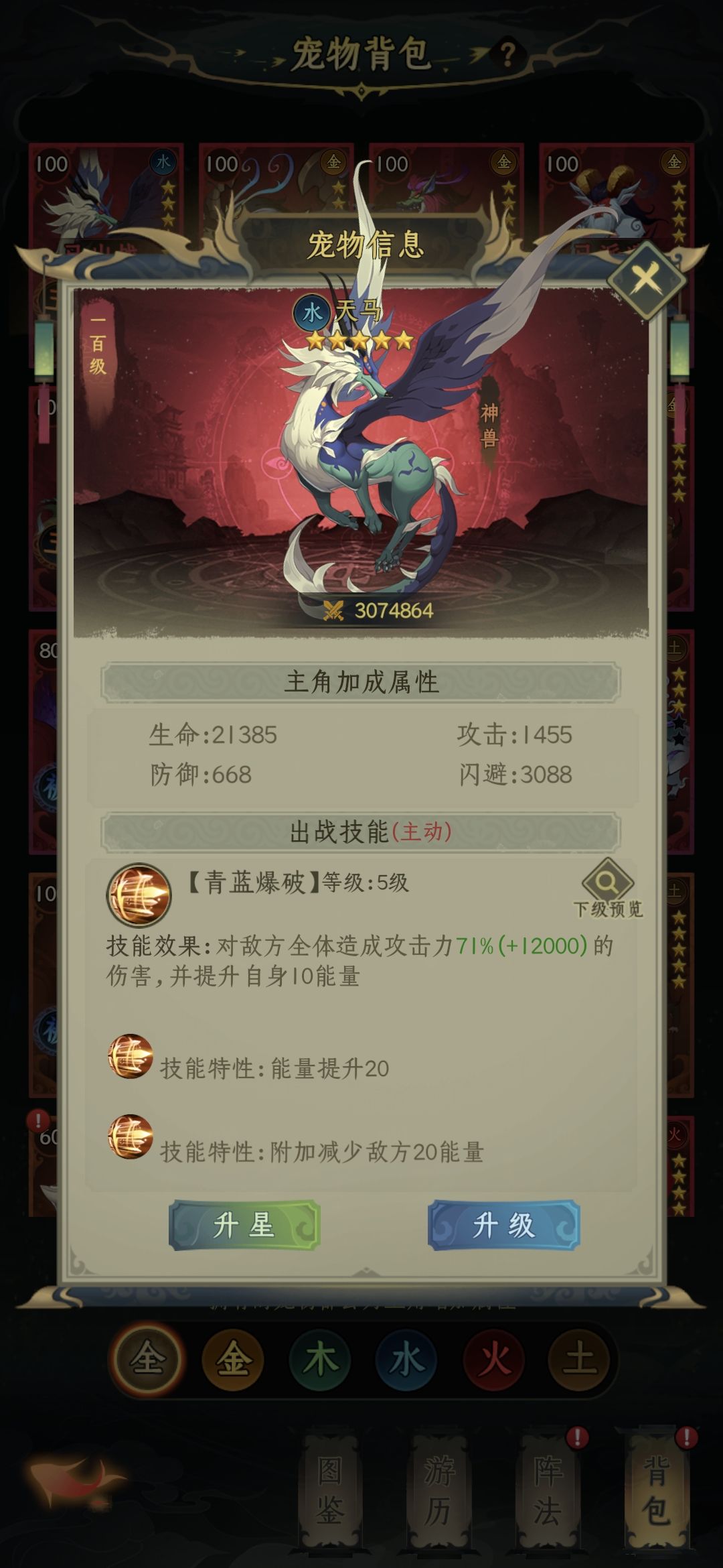 理由是 五星天马可以推能,燃能,还附带攻击,适合用于PK,配合燃能伙伴,可以打出非常好的效果。