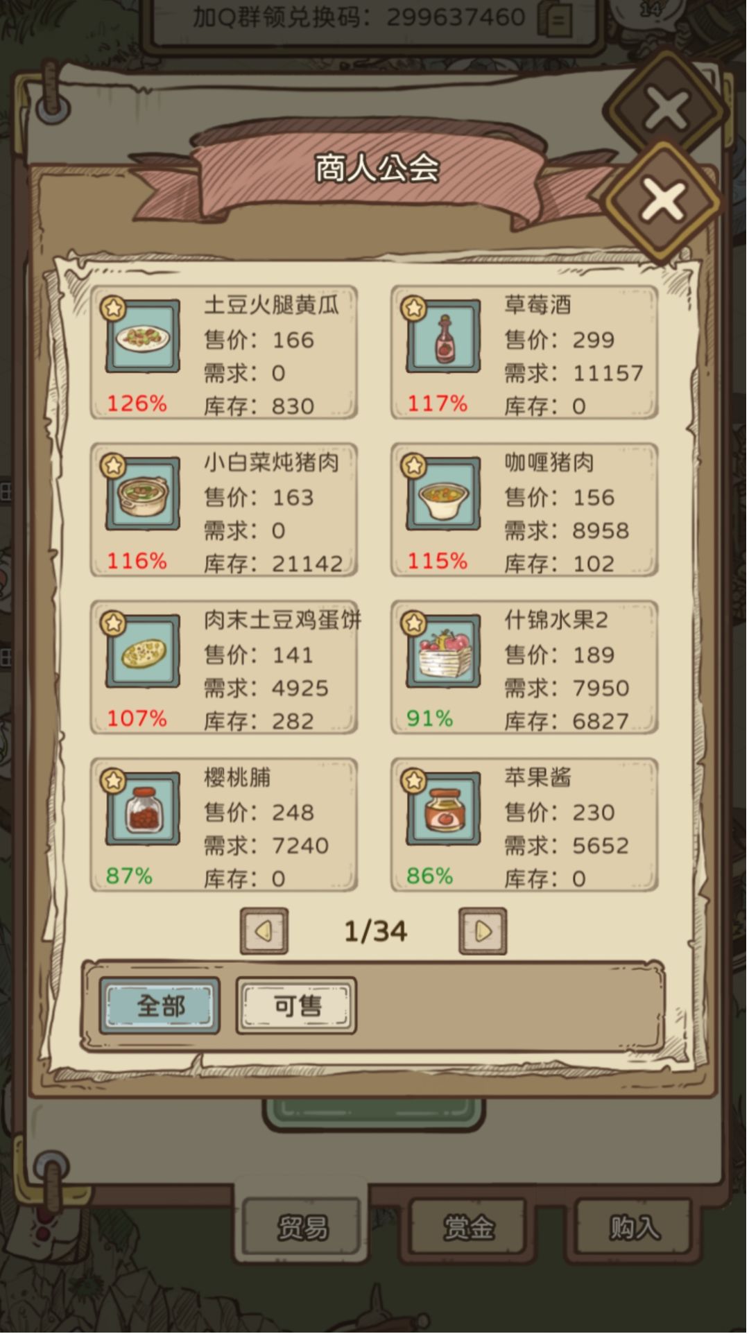售价:随公会等级上升增加上限,初始是最高120%。