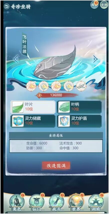 【坐骑飞叶法器改造圆满即可获得奖励】
