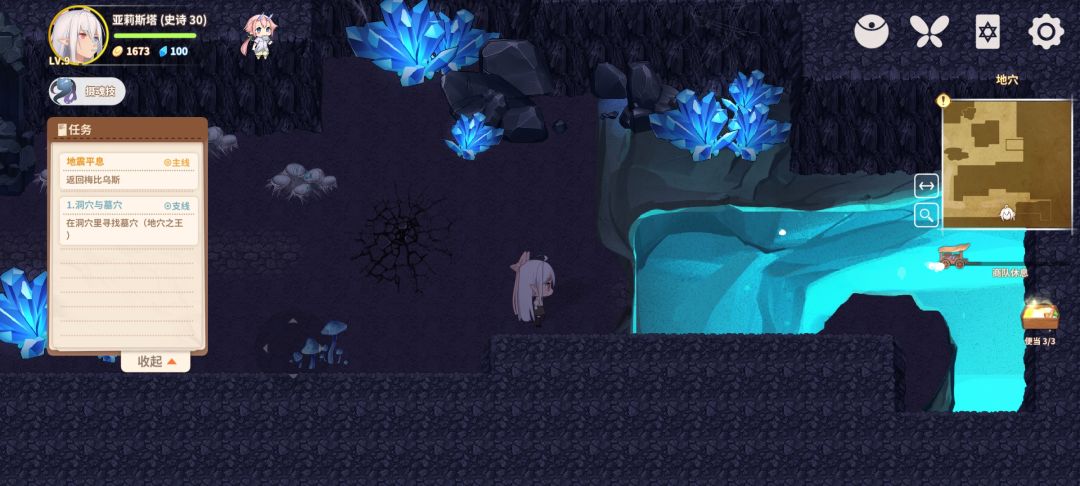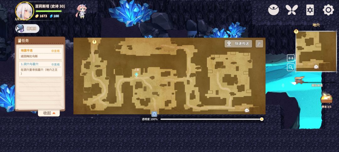 这里进不去,要从第一层这个位置掉下去。去碰到蓝色的区域就会掉下去,有个宝藏任务也是同理,那个在第一层的左边(开局剧情那个)