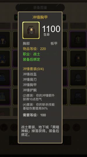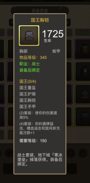 100级,必须要有国王剑X2把,招架拉起来,可以转武器了,建议穿90套,招架回怒跟英打增伤25%,可取!