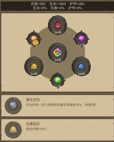 专属宝石选择,优先狂暴姿态(爆伤50%)、暴击宝石(+15%暴击率,持续5秒),如果没有,可以选择能量宝石(吸血)、心灵宝石(技能+5%伤害)