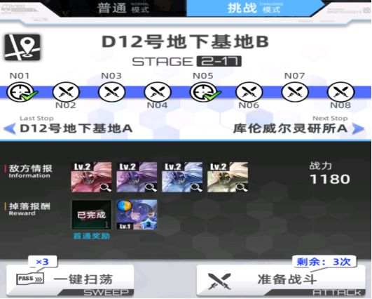 主要推进普通关卡主线,当一整个大关打完后,优先完成挑战前五关,将基站升级材料——基核燃素拿到,方便快速提升基站的等级。