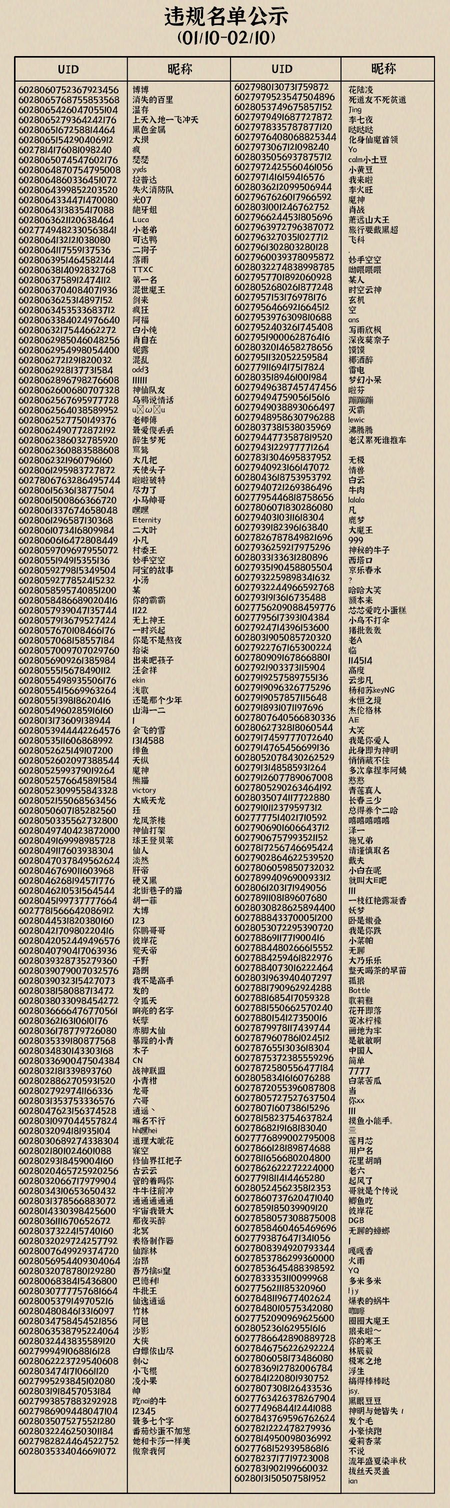 九重试炼用户异常行为及数据异常处理公告01/10-02/10