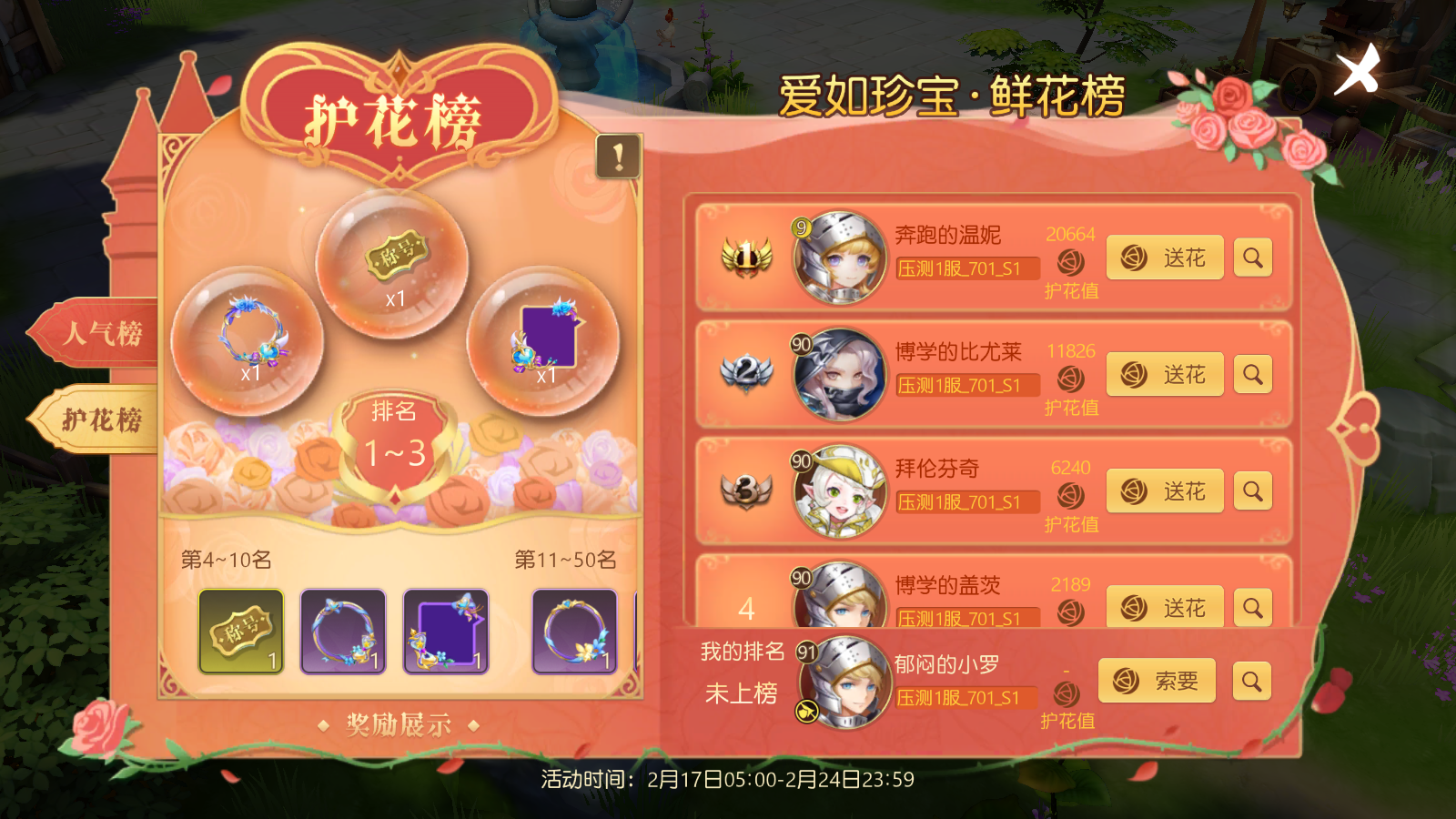 根据排行榜的名次,还能获得永久称号、头像,气泡框等奖励呢!那么,谁将成为人气之王、护花使者呢?让我们拭目以待吧~