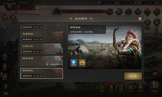 我们的游戏等级达到40级时即可开启射靶竞技活动,在游戏主界面点击事件面板,选择射靶活动,即可进入参与活动