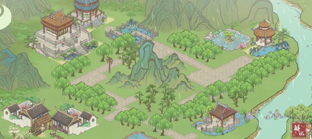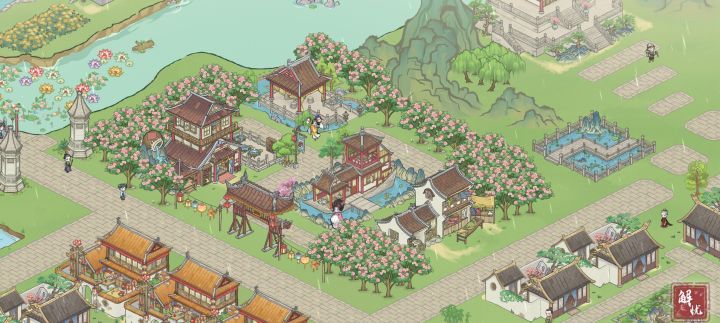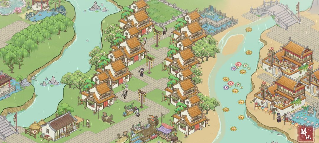 采用同色系模式和对狭长地形的建设规划,以及对酒馆商业区,集市商业街,规划建设方案