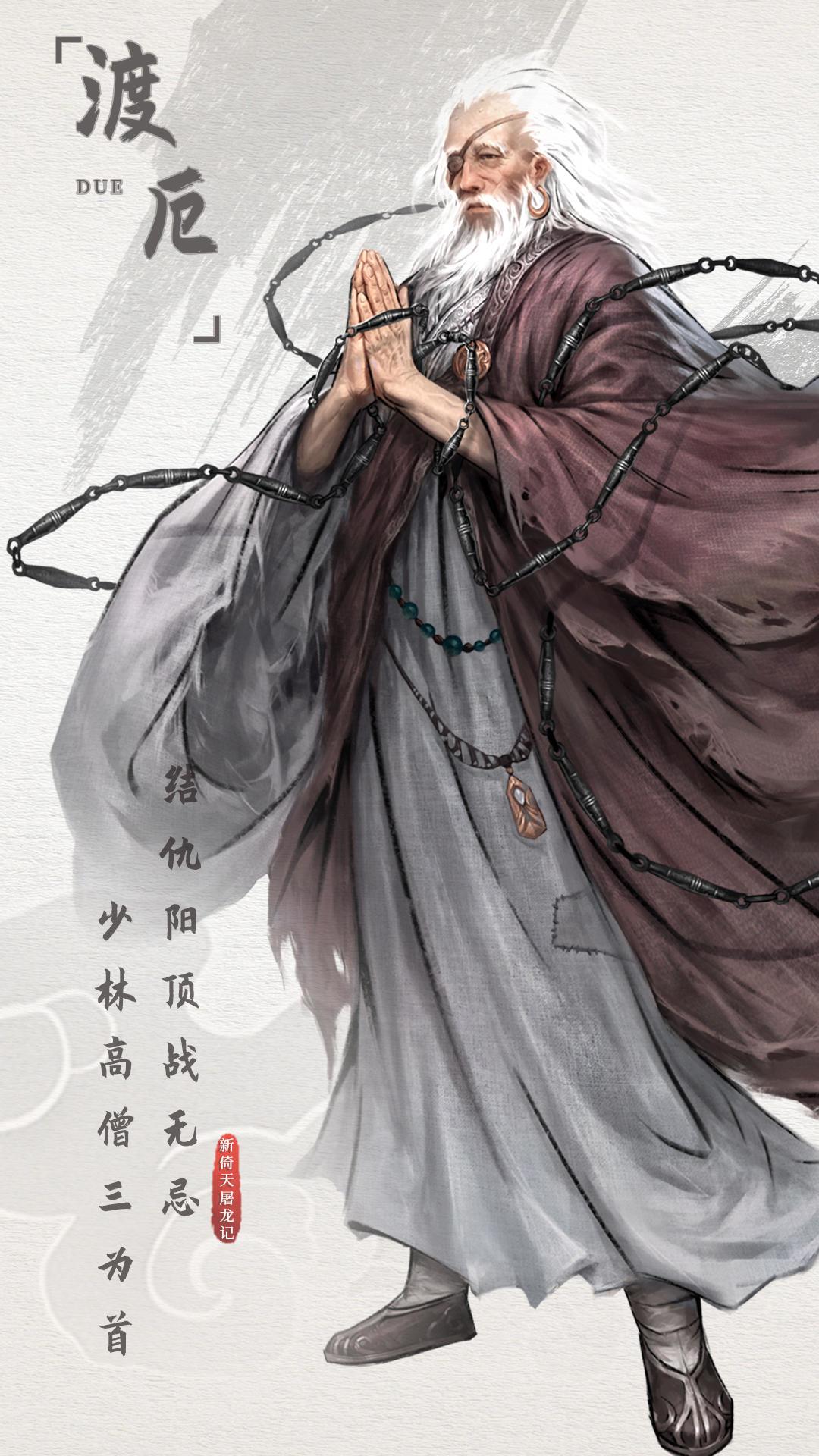 曾与阳顶天一战,一目因此失明。与师弟渡劫、渡难并称为少林寺辈分最高的三大高僧。张无忌曾三战金刚伏魔圈,渡厄与之相斗到最后,并收谢逊为徒。