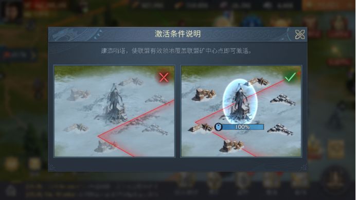 王国地图上的冰侵联盟矿被冬祸占领,需要联盟建造哨塔覆盖到矿区的中心才能对其发起进攻和净化。联盟矿一共有5级,越靠近王国地图中心区域,等级越高,击杀冬祸的奖励也就越丰富。
