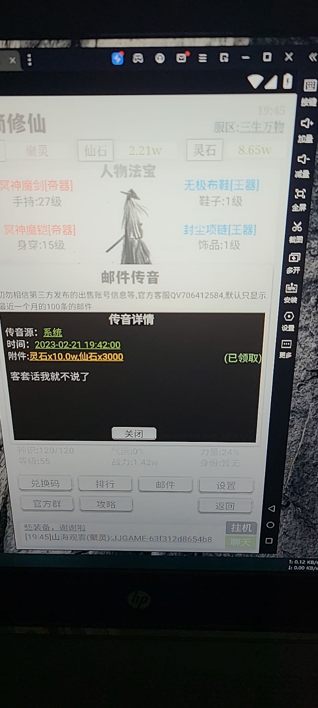 是不是有bug,手机领取了到模拟器打开不见了10w灵石和仙石