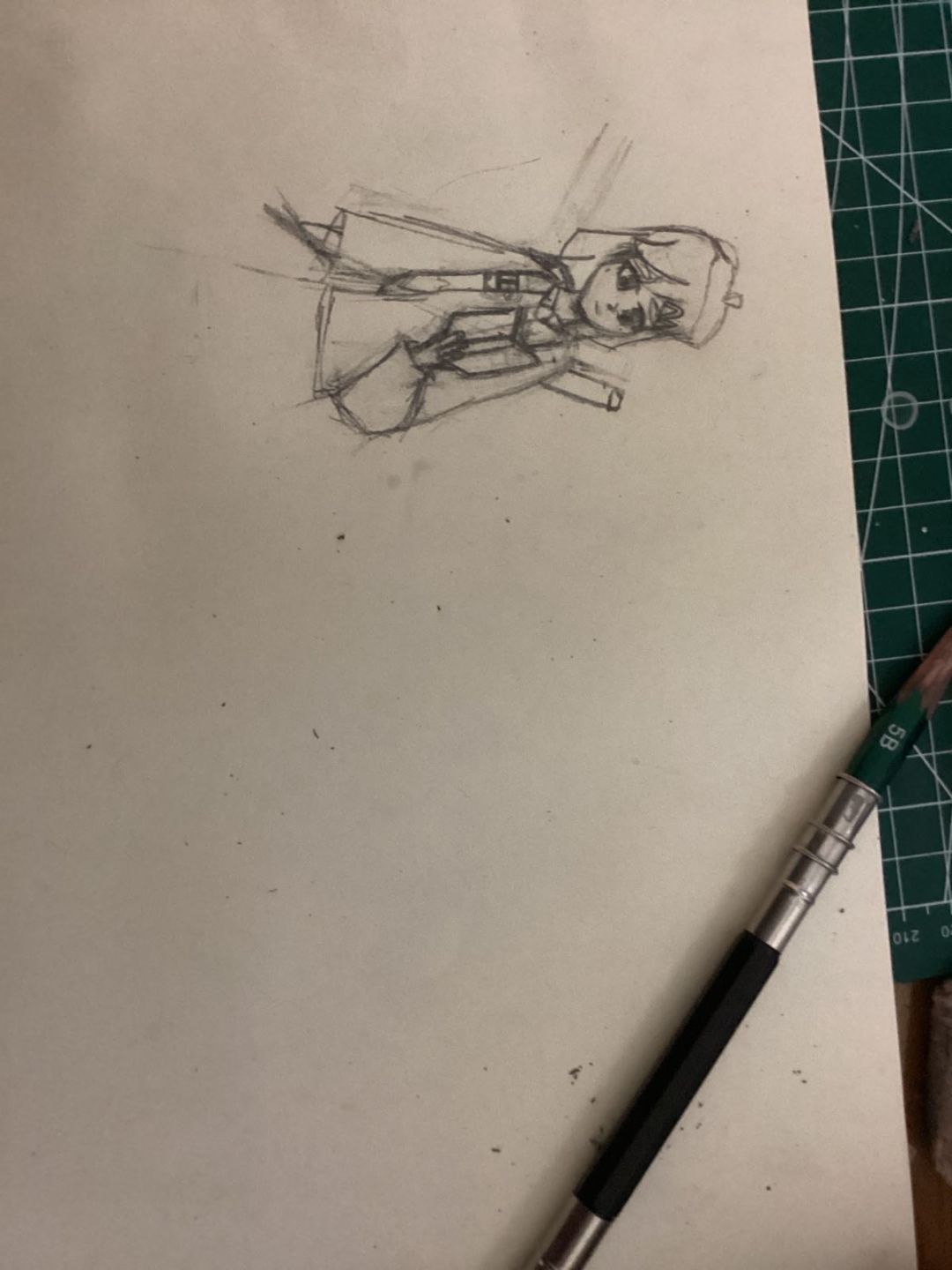 待机,我觉得有些奇怪。所以改了一下,把扛着笔改成了更比较符合形象的执笔。