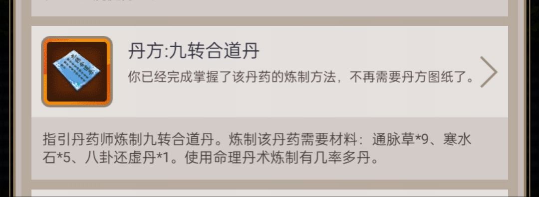 剧透一下,有需要的,可以提前留着八卦还虚丹,别低价卖给黑心杂货店了。