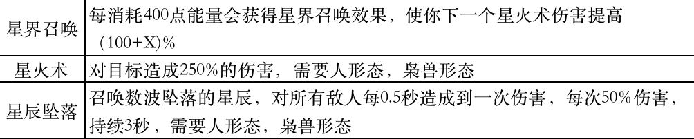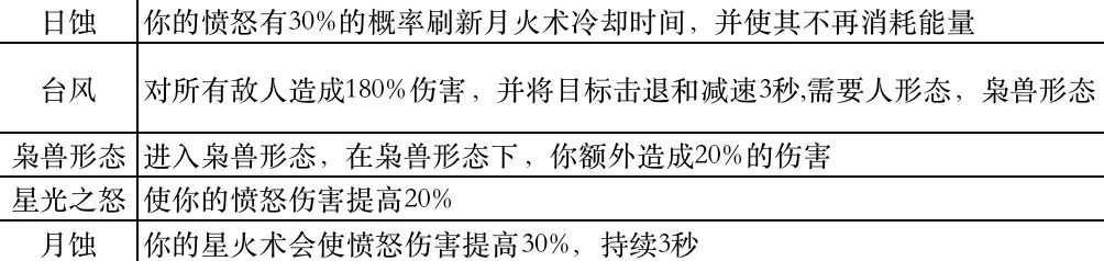 接下来进入正题,平衡德又称鸟德,咕咕(因其专精技能枭兽形态酷似一只胖嘟嘟的鸟)。是德鲁伊专精里的远程输出天赋。我们先来看一下平衡德的技能。