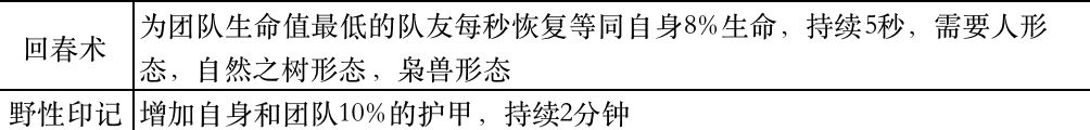 回春术和野性印记我称之为辅助技能:一个加血,一个加护甲。能有效增加我们战斗中的容错率。