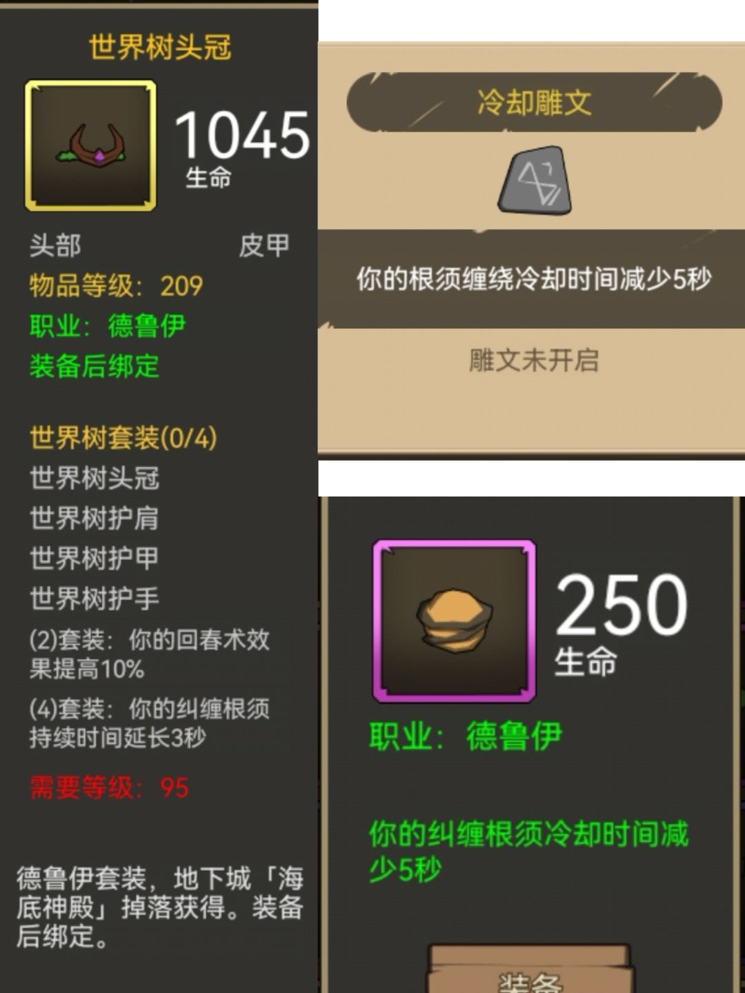 这样一来我们的纠缠根须本身20秒的冷却就变成了10秒。 同时可以去海底神殿刷一套世界树套装 。