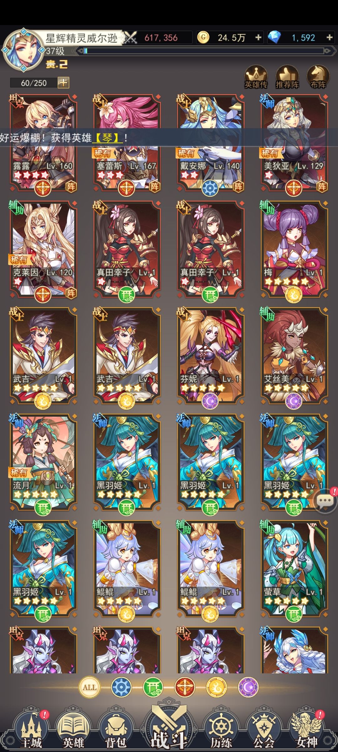 接下来说一下新入坑该注意的一点,开服七天每天会有冲榜,消耗抽奖券,阵营召唤券,英雄星级,女神石等等,如果规划好,并且氪佬不多的话,可以冲冲前十,奖励还是不错的。我是佛系,能拿个前50奖励就知足了