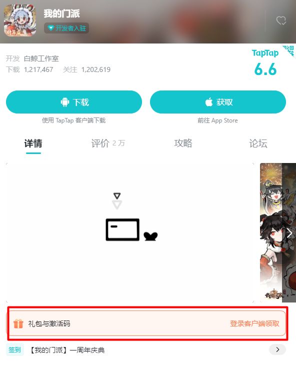 由于TapTap平台限制,只能在安卓端的TapTap App中才会显示【礼包与激活码】。